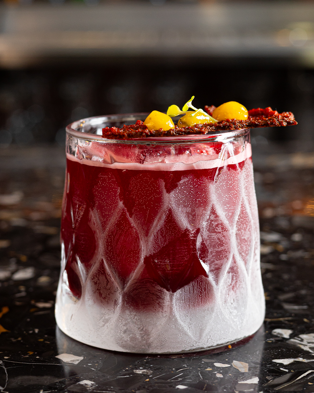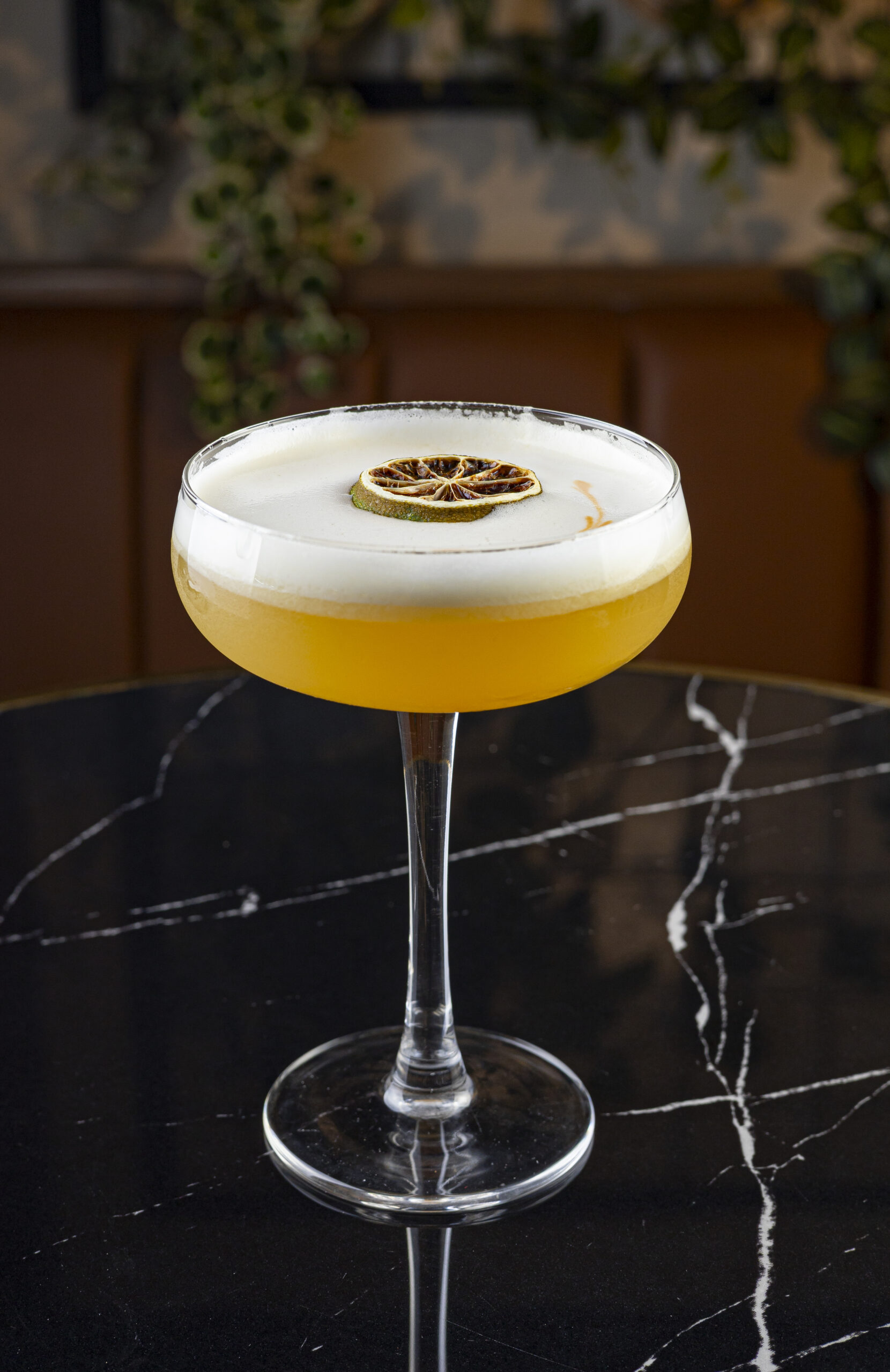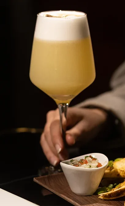 Pisco Tabernero, limón natural, syrup simple, albúmina, Amargo de Angostura.