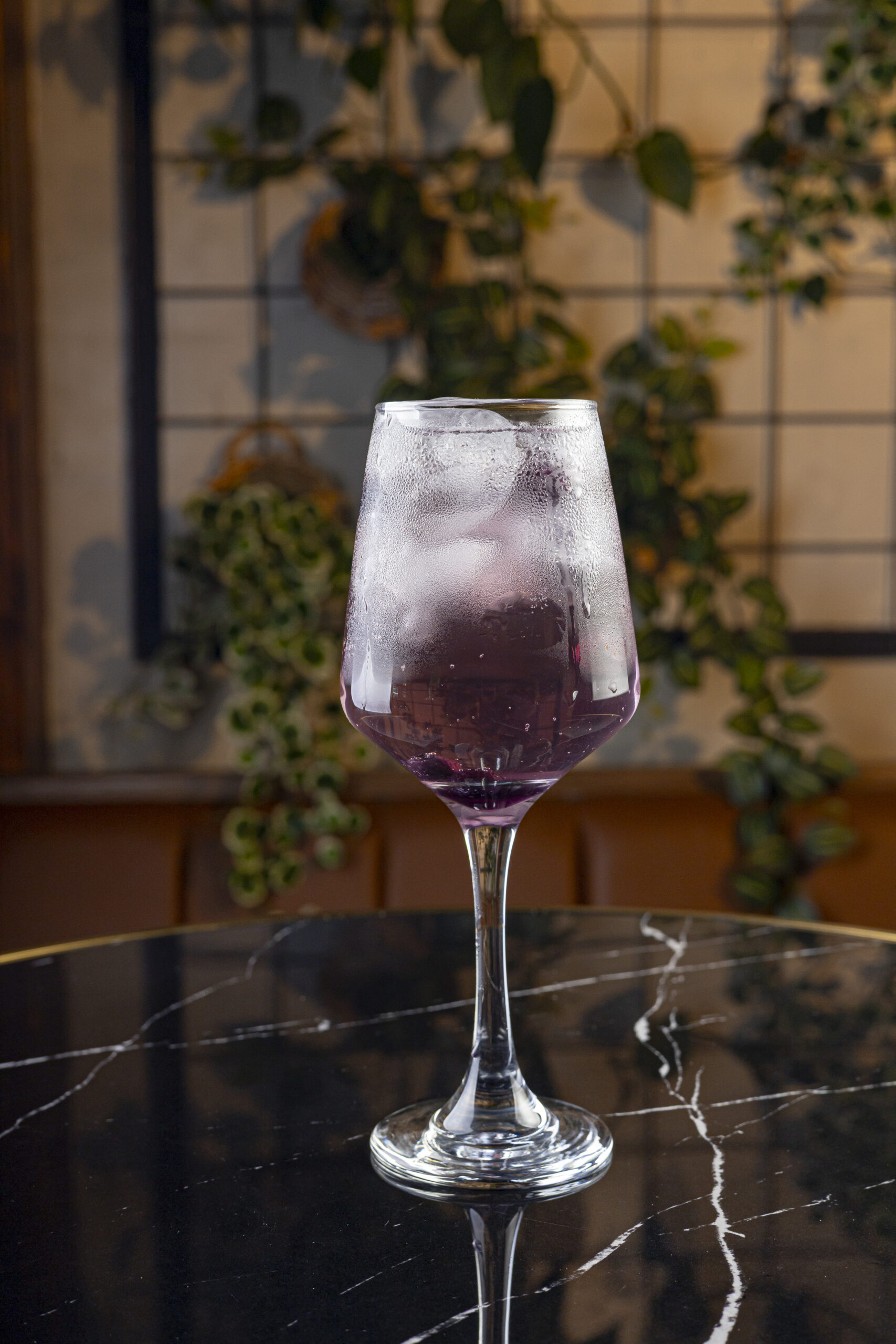Merlot, jugo de manzana, syrup simple, Sprite.