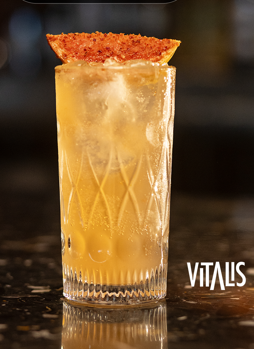 Jugo de naranja, mezcal, limón natural, borde de sal, tajín.